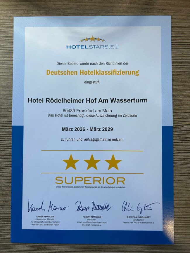Das Hotel Rödelheimer Hof wurde mit einer Urkunde für freiwilligen Klimaschutz geehrt. Der Geschäftsführer von GREIF Mietwäsche hat uns diese Urkunde nun zukommen lassen. Allein im Jahr 2025 haben wir mehr als 8 Tonnen CO2 einsparen können und gleichzeitig einen Beitrag für ein Klimaschutzprojekt geleistet. Alle Informationen finden Sie im beiliegenden PDF. Zum PDF…